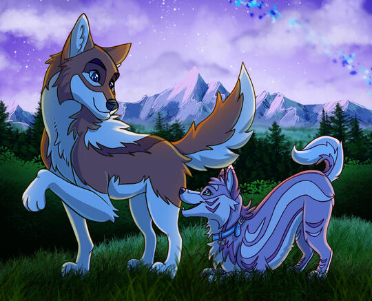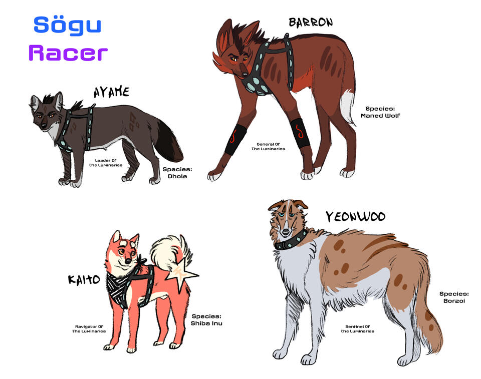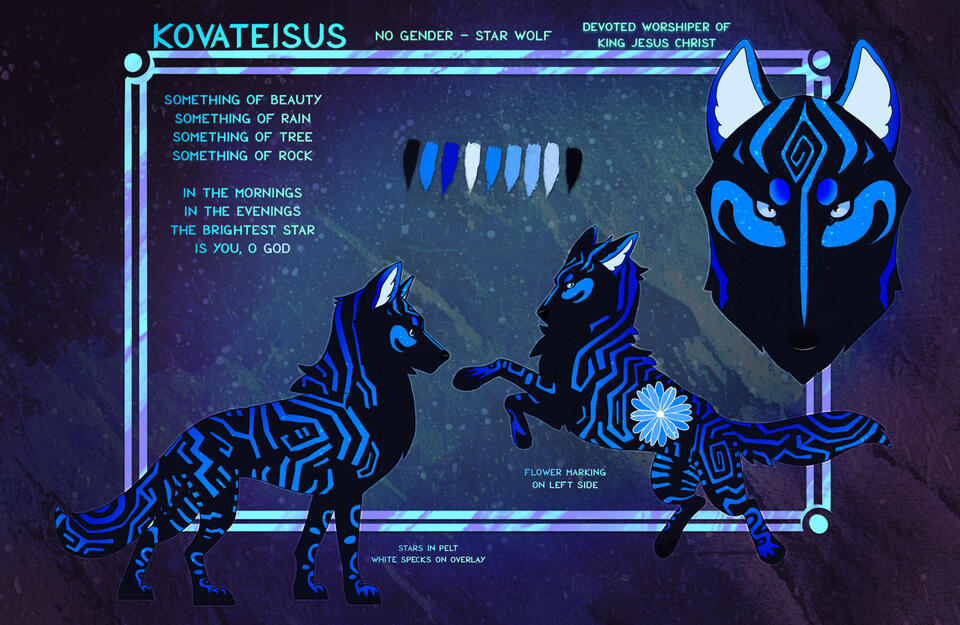 My reference sheets include two full-body side profiles (one of each side) and a headshot. Contact me about adding more! No shading permitted. Abstract background may be added.